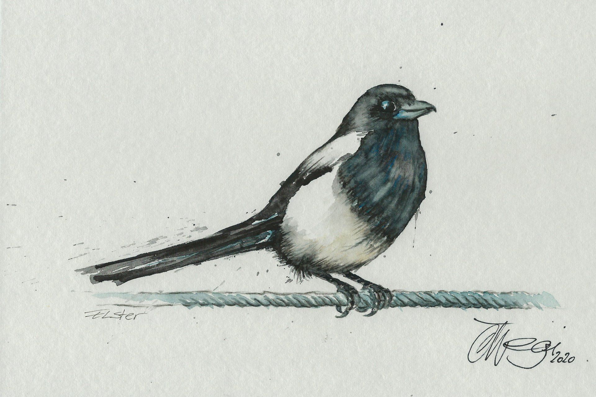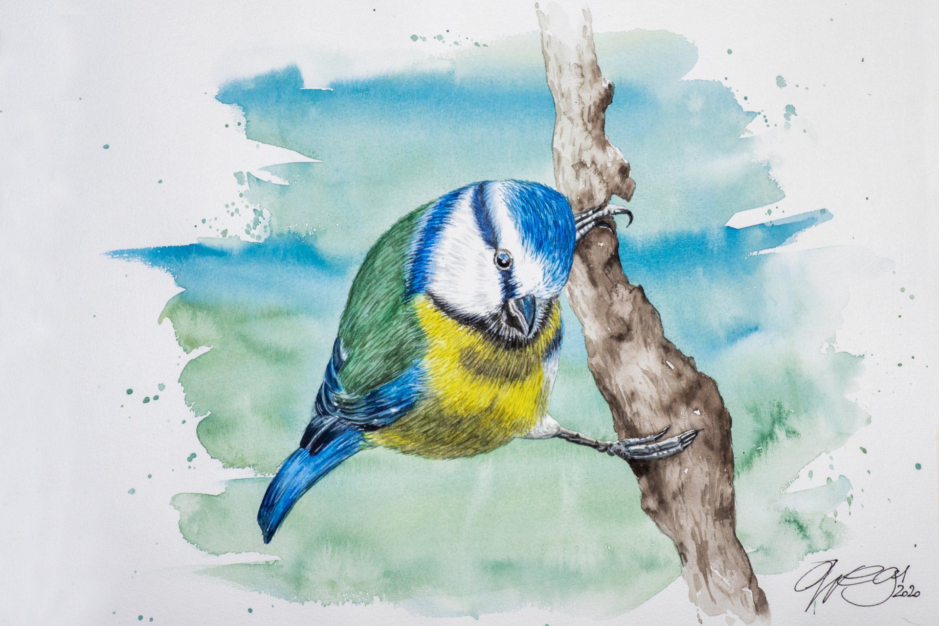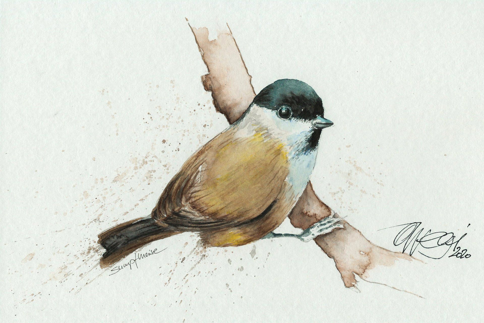 Sumpfmeise - Feder Aquarelltechnik
