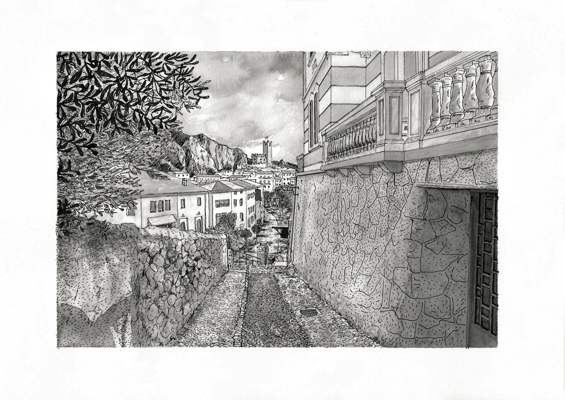 Malcesine - Feder Aquarell Technik